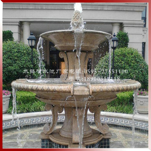 石材石雕噴泉設(shè)計(jì),使靜水變?yōu)閯?dòng)水,使水也有了靈魂,又輔之以各種燈光效果,使水體具有豐富多采的形態(tài),可以緩沖、軟化城市中“凝固的建筑物”和硬質(zhì)的地面,以增加城市環(huán)境的生機(jī),有益于身心健康并能滿足視覺(jué)藝術(shù)的需要。大型城市廣場(chǎng)中的人工動(dòng)態(tài)噴泉,也多來(lái)自自然的種種水態(tài),如瀑布、疊水、水簾、溢流、溪流、壁泉等,隨著科學(xué)技術(shù)的發(fā)展進(jìn)步,各種噴泉造景真是花樣翻新、層出不窮,幾乎達(dá)到了人們隨心所欲創(chuàng)造各種晶瑩剔透、絢麗多姿動(dòng)態(tài)水景的程度。噴泉在當(dāng)今時(shí)代,已經(jīng)形成了一道獨(dú)特的人文景觀。