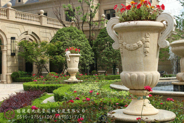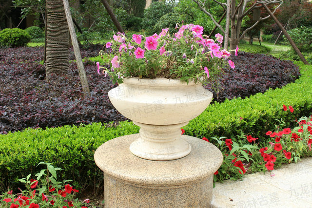 石材花缽可放在臺(tái)階或小區(qū)入口兩側(cè),屹立于景墻之上,廣場(chǎng)的中心,水池邊上,單元入口或擺放于街邊。既可以獨(dú)自成景,與水中的倒影交相輝映,又可以和噴泉一道形成優(yōu)美的旋律。