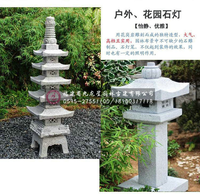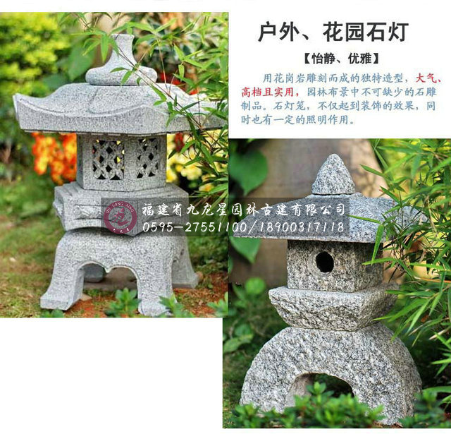 石燈籠最早雛形是中國國供佛時點的燈,它表明“立式光明”。隨著佛教在欽明天皇十三年(552年)傳入日本以后,石燈籠的技術也傳入日本。之后,在日本得到大量應用,并在世界各國廣為流傳,致使許多人誤認為石燈籠是日本獨有的園林小品。當時由于茶道的大發(fā)展,石燈籠常被作為茶室的一種露天裝飾物而廣泛進入庭院裝飾。后來成為了茶庭中必不可少的小品。