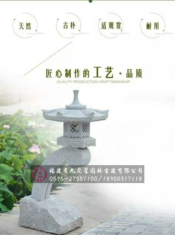 石燈籠被用于園林,庭院的裝飾始于十六世紀(jì)晚期的安土桃山時(shí)代,當(dāng)時(shí)由于茶道的大發(fā)展,石燈籠常被作為茶室的一種露天裝飾物而廣泛進(jìn)入庭院裝飾,隨著,石燈籠用途的改變,石燈籠的樣式也就更加多樣化了,例如出現(xiàn)了三腳或四腳的雪見燈籠,同時(shí)對(duì)竿和笠的部分也給予新的設(shè)計(jì),石燈籠的樣式由模仿進(jìn)入創(chuàng)新,日本的石燈籠除了少量用于寺院神社以外,大多數(shù)的石燈籠是用于庭院、園林裝飾使用。