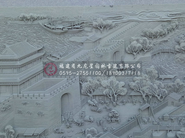 浮雕作為石雕藝術(shù)中的一種造型語言和形式,有它特有的塑造方法,它是在有限的塑造空間里對自然物象進(jìn)行體積上的合理壓縮,并通過透視和錯覺等方法向人們展示較抽象的空間效果。由于浮雕是在第三度空間上經(jīng)過了壓縮,立體的形象被壓扁,形體上也見薄,所以又往往容易被人錯誤地認(rèn)為浮雕就是圓雕的一半。