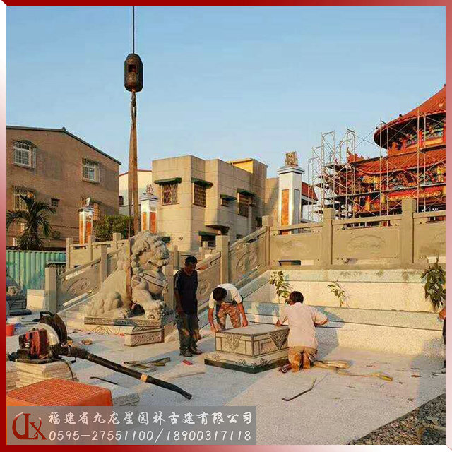 寺廟石雕獅子抱鼓石桿欄安裝