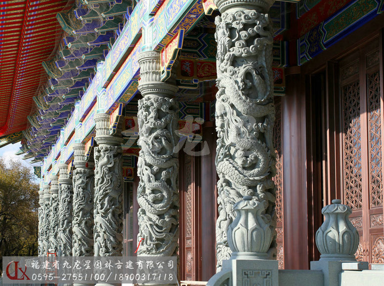 九龍星園林古建加工的寺廟石雕龍柱有單龍柱、雙龍柱、滾龍柱、盤龍柱、蟠龍柱、華表柱、龍鳳柱、八仙龍柱、青石龍柱等多種造型雕刻。我們通過(guò)專業(yè)且標(biāo)準(zhǔn)化的采購(gòu)渠道,甄選優(yōu)質(zhì)的礦料,加工的寺廟石雕龍柱,大批量應(yīng)用于寺廟建筑裝飾美化,贏得客戶好評(píng)。