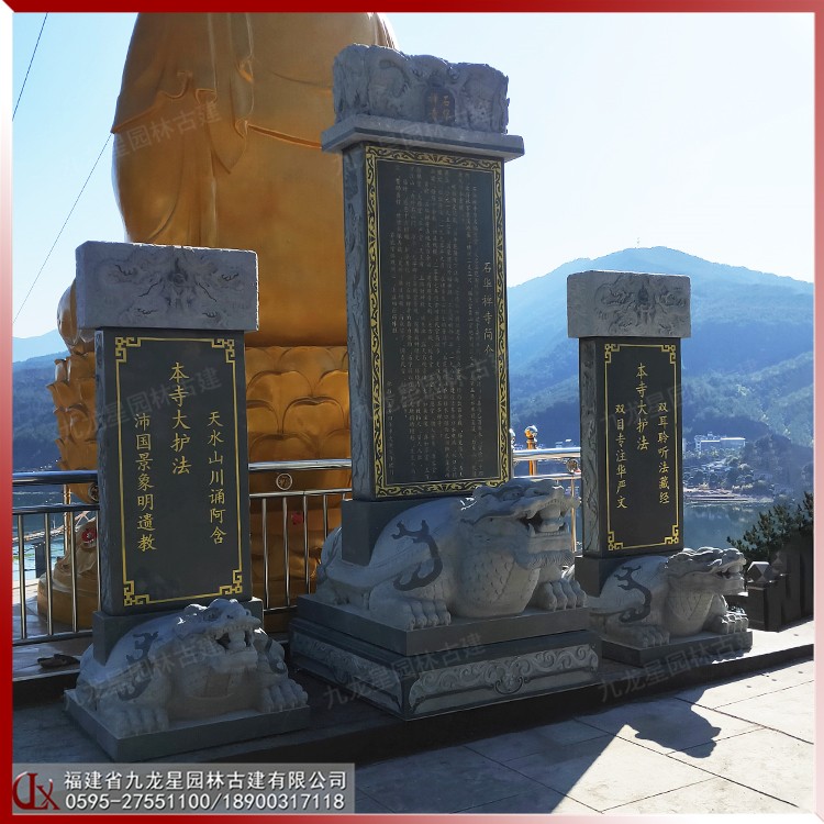 福建省九龍星園林古建有限公司石雕產(chǎn)品內(nèi)容涵蓋宮觀寺廟、塔亭柱欄、龍獅虎獸、神佛造像、大型城市景觀雕塑等石雕精品,力求于“方寸之間”勾描中國南派雕刻藝術(shù)精魂的傳統(tǒng)工藝、傳統(tǒng)題材、傳統(tǒng)手法,展示惠安雕刻出神入化的精湛技藝和亙古長明的文化傳承。