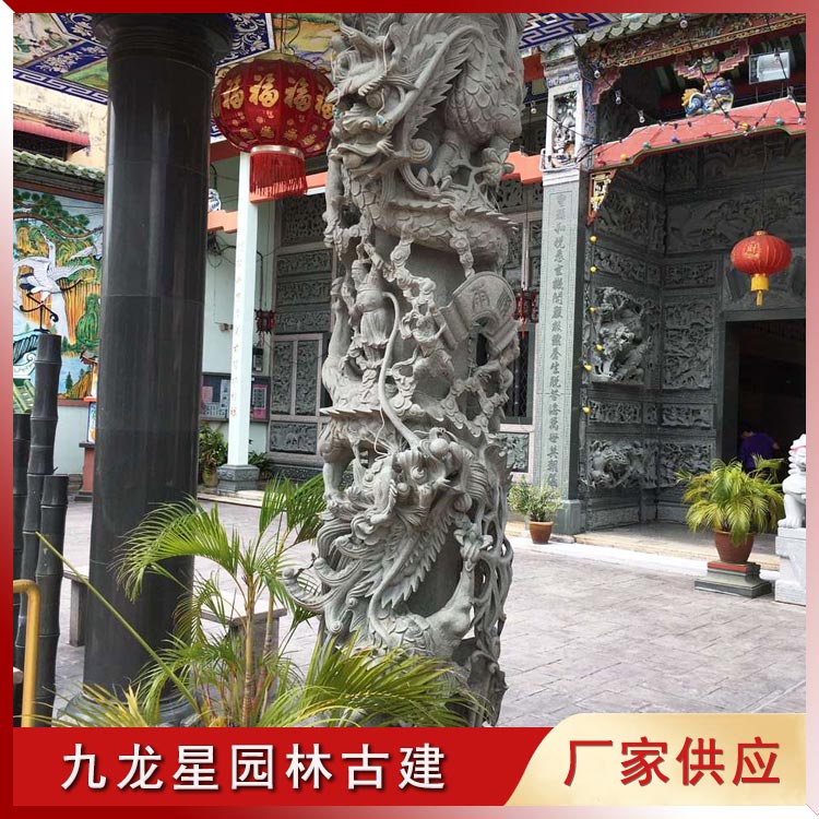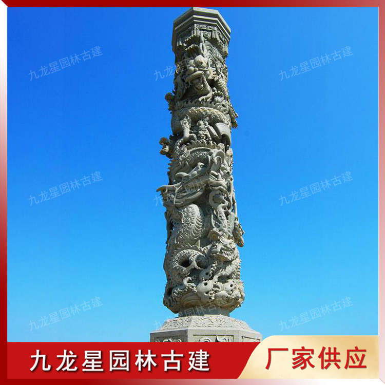 盤龍柱石雕 青石雕龍柱 寺廟石雕龍柱的應(yīng)用 九龍星