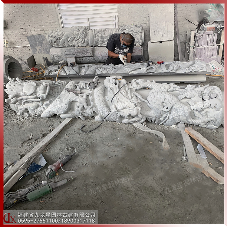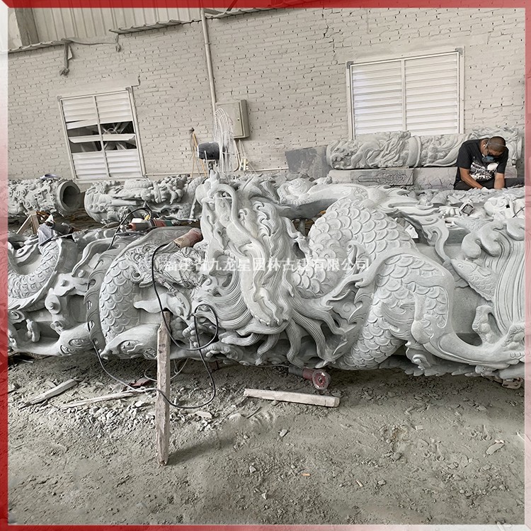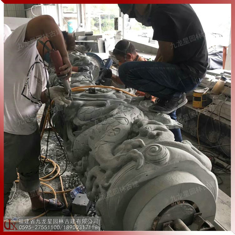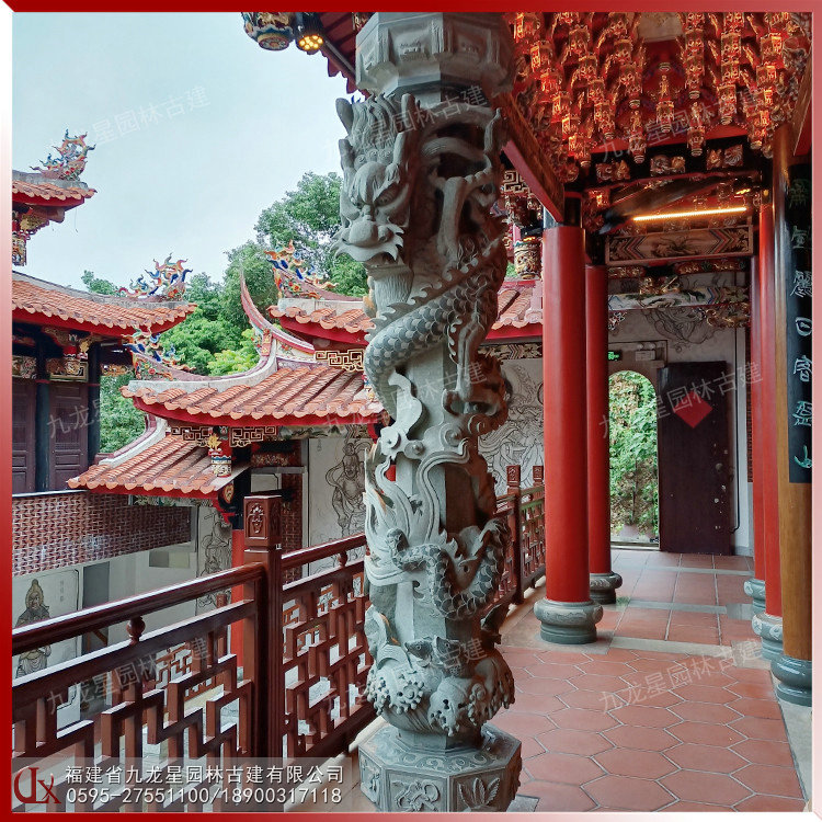 祖廟大門石雕龍柱 惠安青石石雕龍柱 手工雕刻