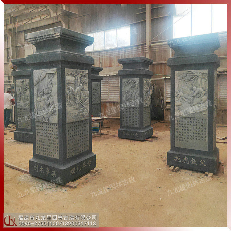 方形石雕柱子刻24孝浮雕圖 石雕方柱生產(chǎn)廠家