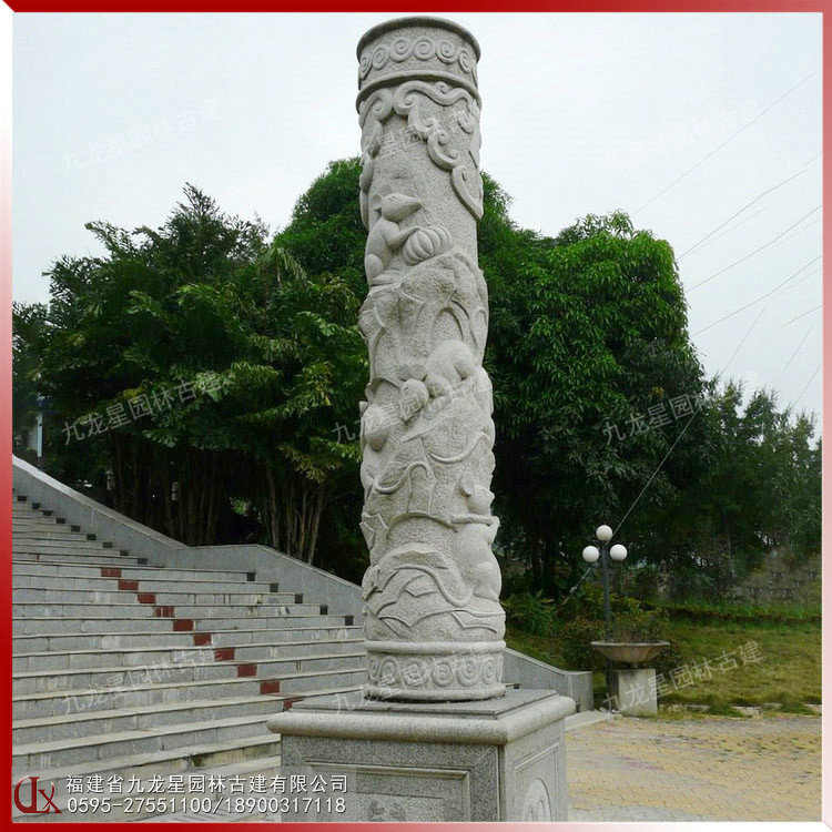 中式圖案十二生肖浮雕柱子 福建圓柱石雕廠制作