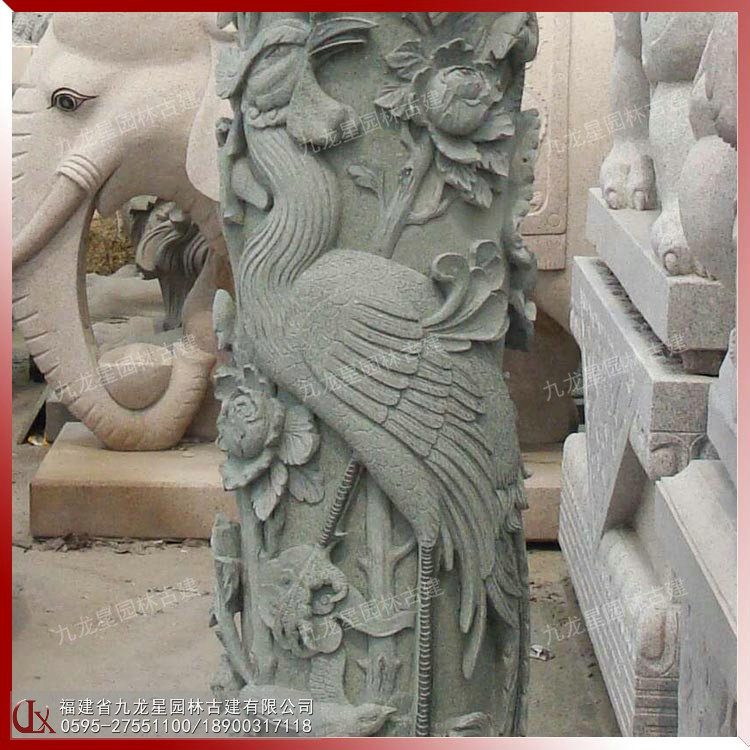 石雕鳳凰花鳥柱 石材圓柱龍柱 直徑高度可定制