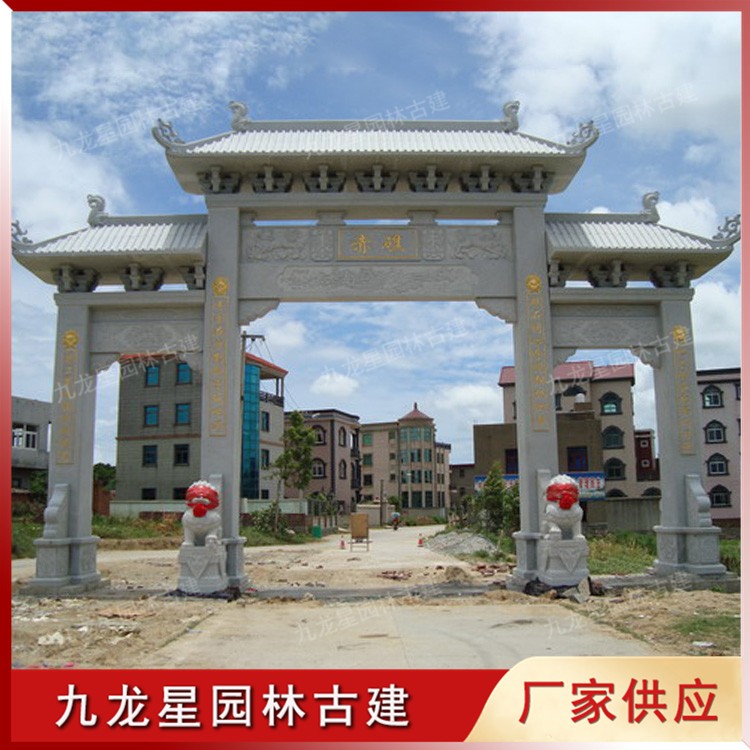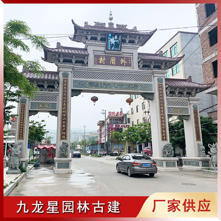 現(xiàn)代村莊牌坊建設 村口石牌坊圖片 廠家石雕定制 九龍星